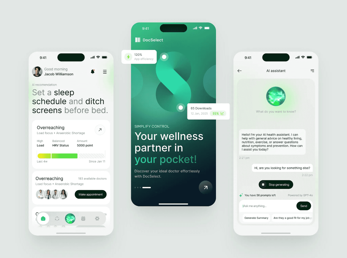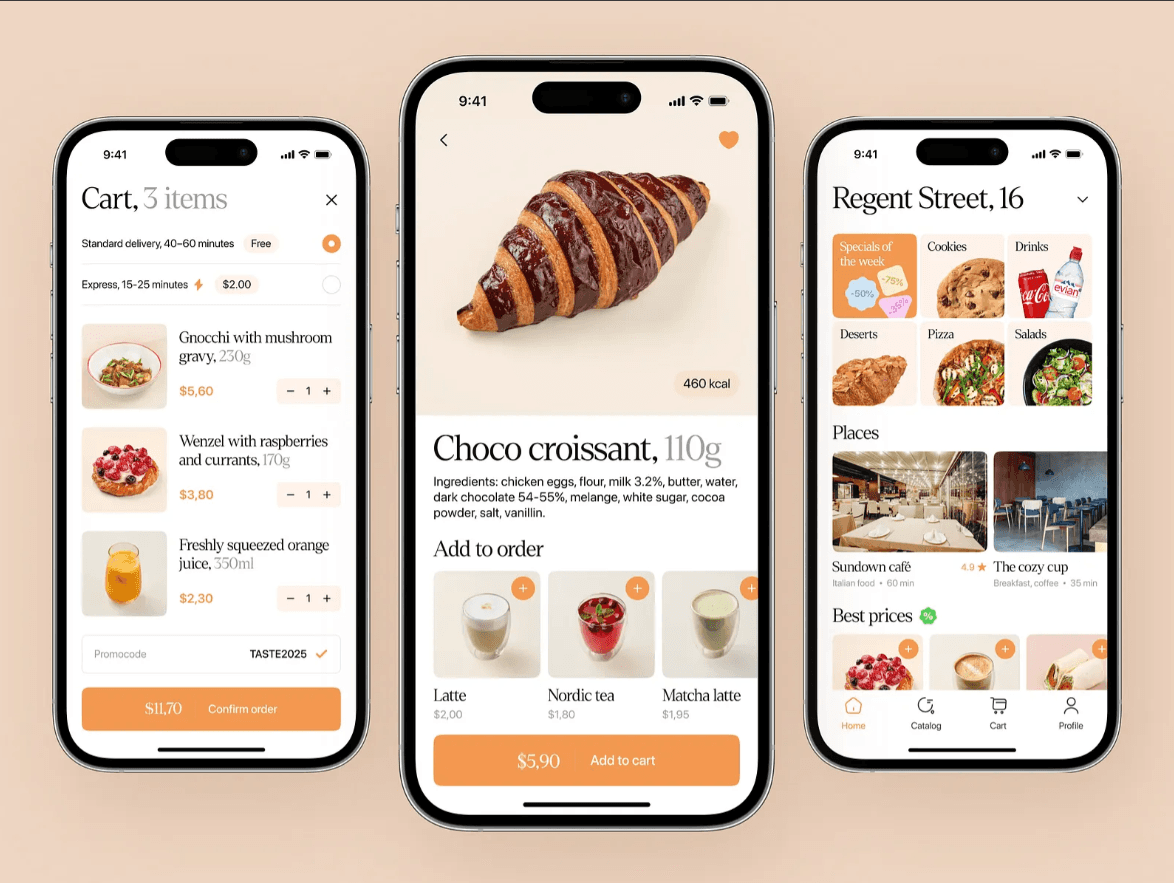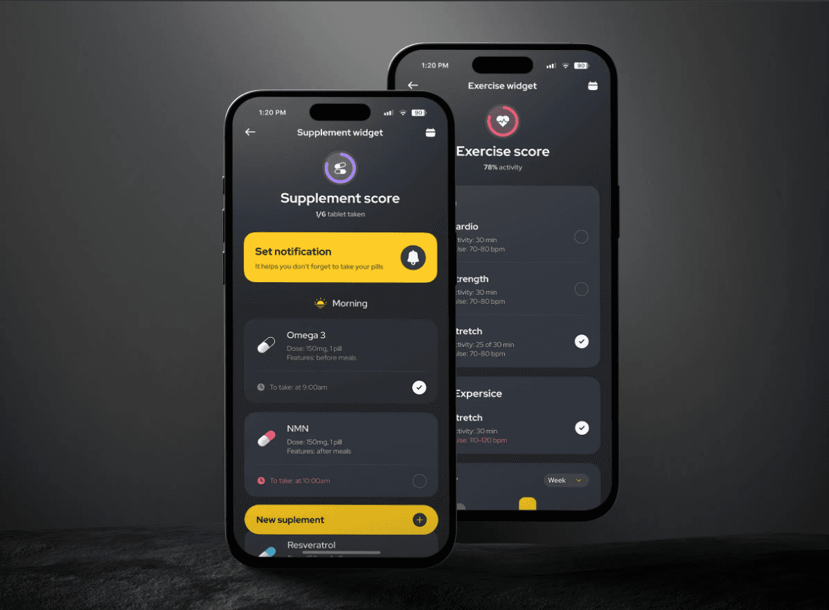 Iconography & Imagery: Showcasing the use of custom and standardized iconography to enhance meaning and efficiency, such as the clear status symbols in the wellness app and the product imagery in the food app.